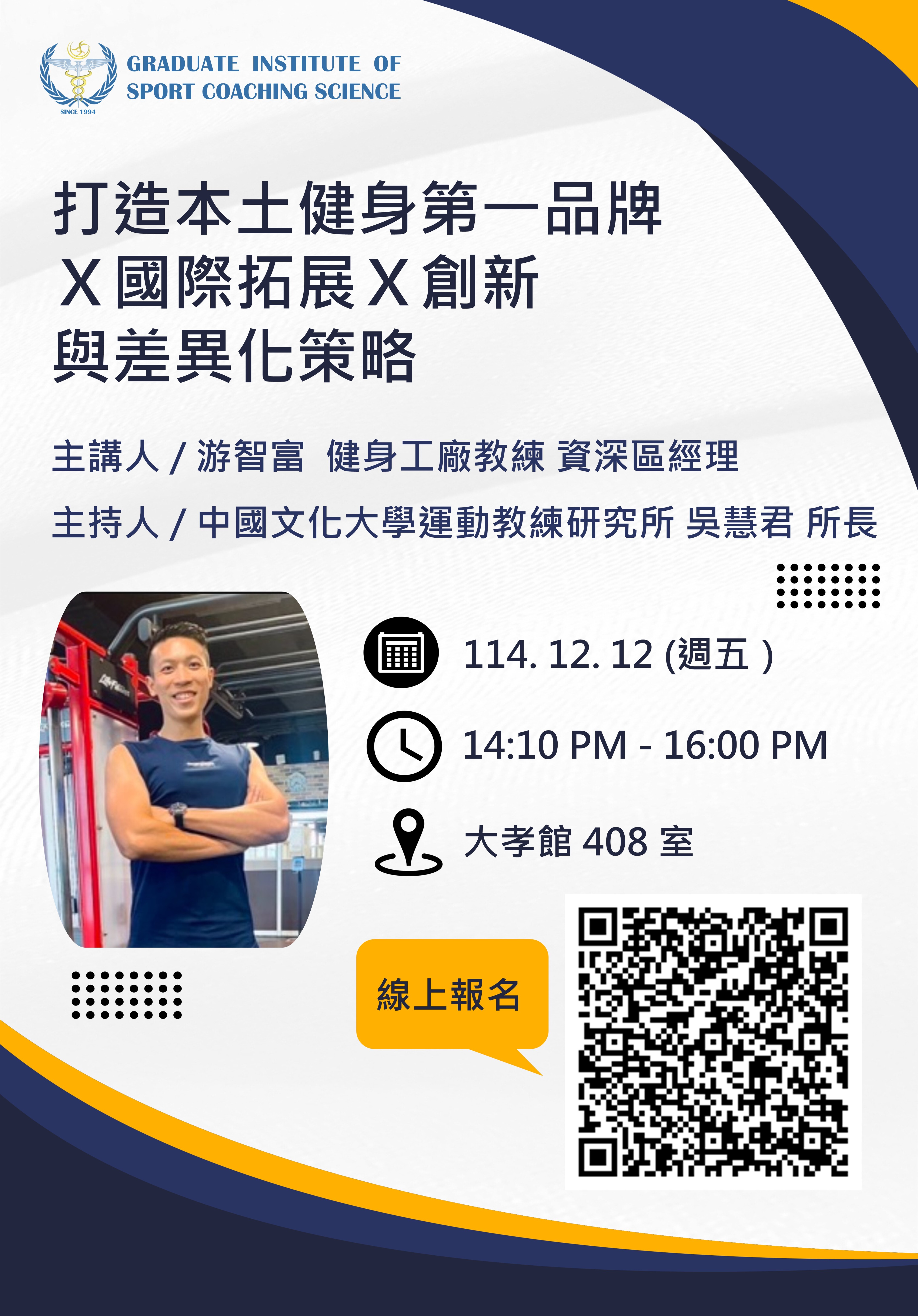 【研習活動】114/12/12 運動教練研究所「打造本土健身第一品牌 × 國際拓展 x 創新與差異化策略」專題講座開始報名!